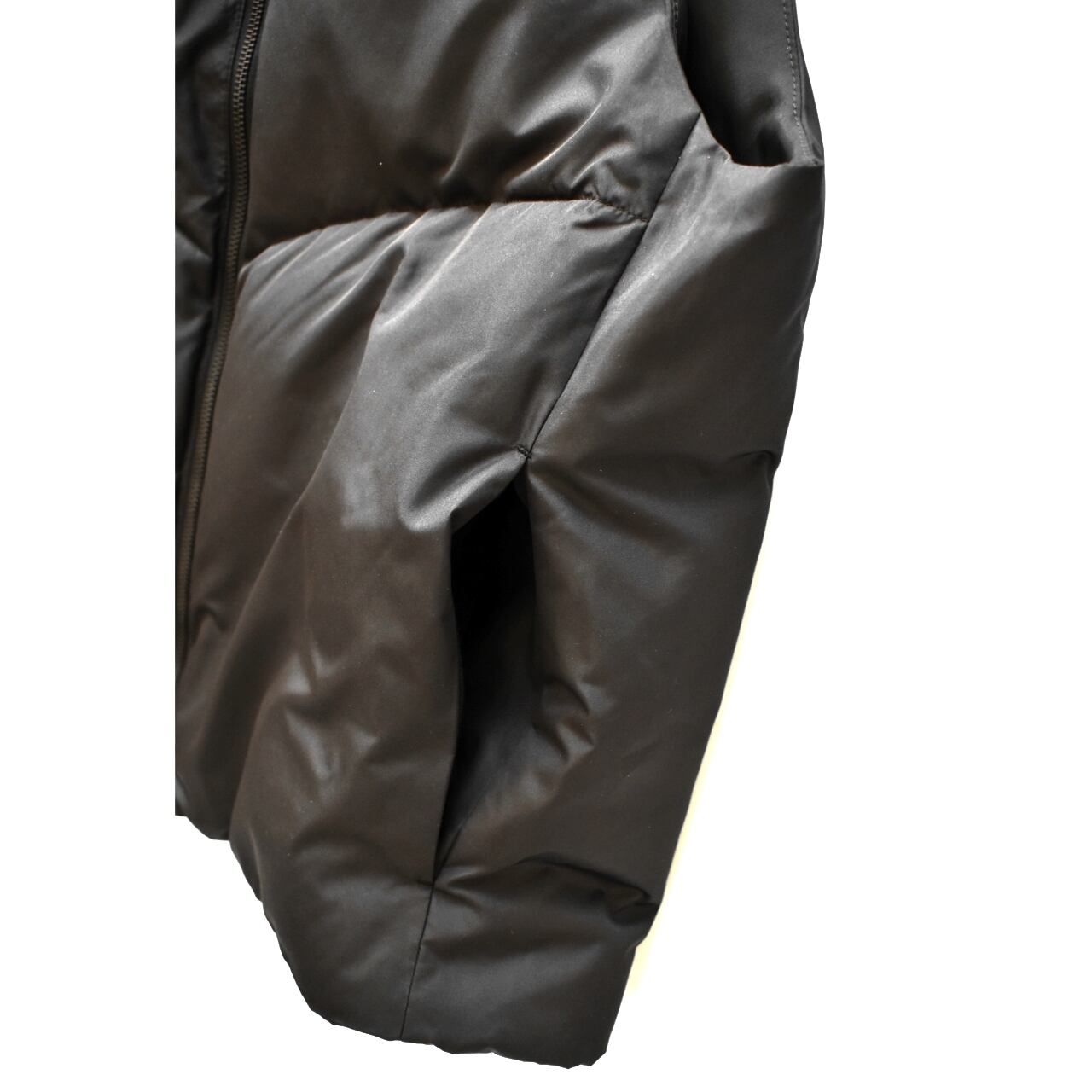 このベストの洗練されたデザインは、ダウン特有のキルティングステッチをあえて内側に隠している点にあります。これにより、ダウンのボリューム感を抑え、すっきりとしたミニマルな表情になり、都会的な大人の装いにぴったり馴染みます。