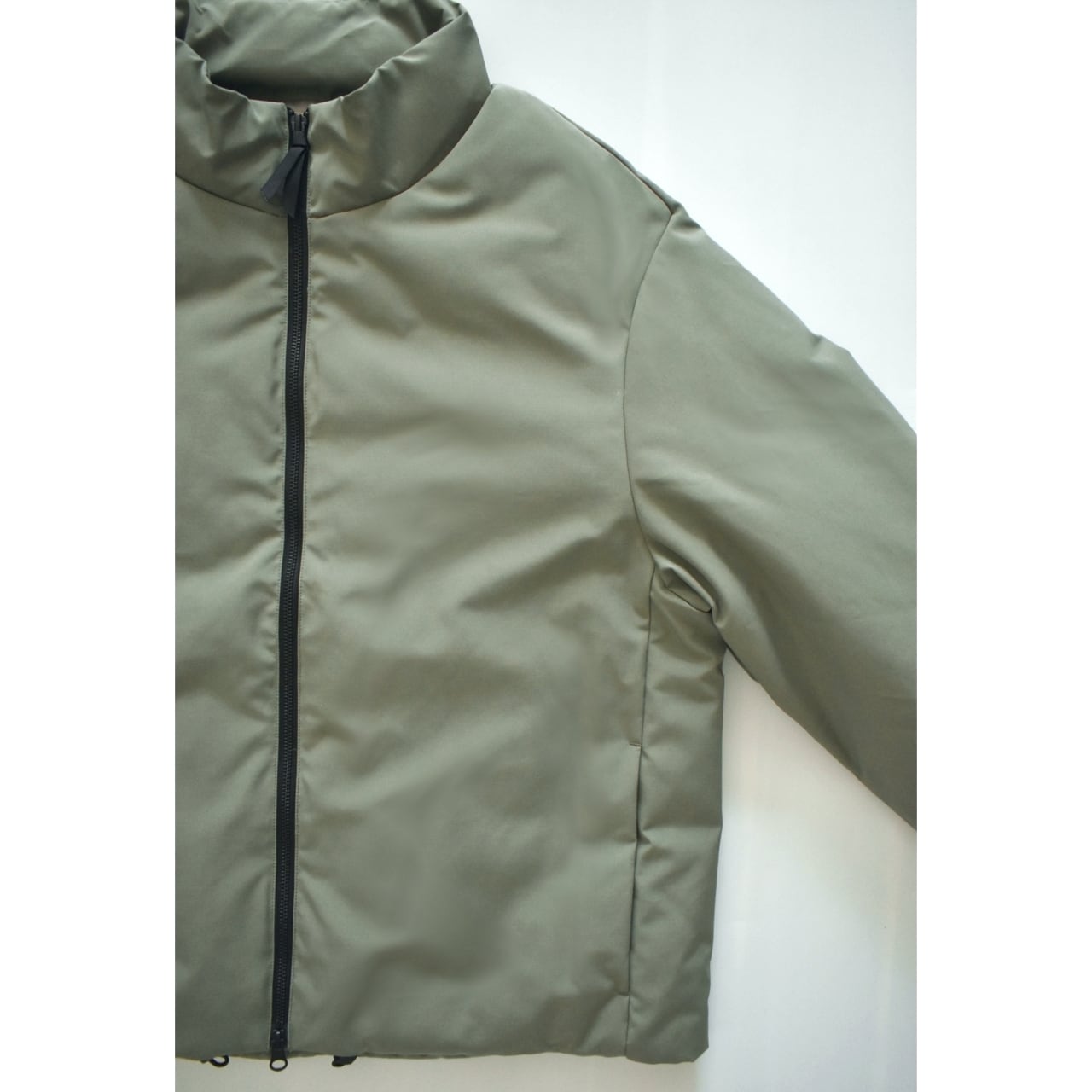 最大の特徴は、一般的なダウンジャケットにあるキルティングステッチを内側に隠すことで、ダウンのボリューム感を抑え、都会的でモダンな印象に仕上げている点です。