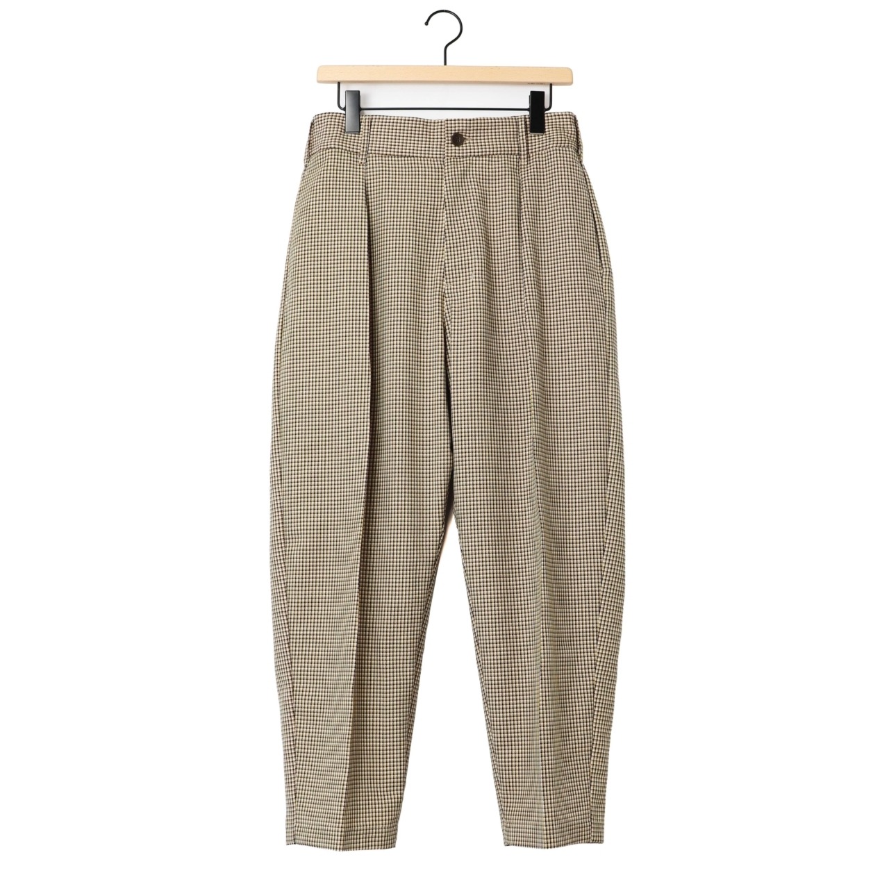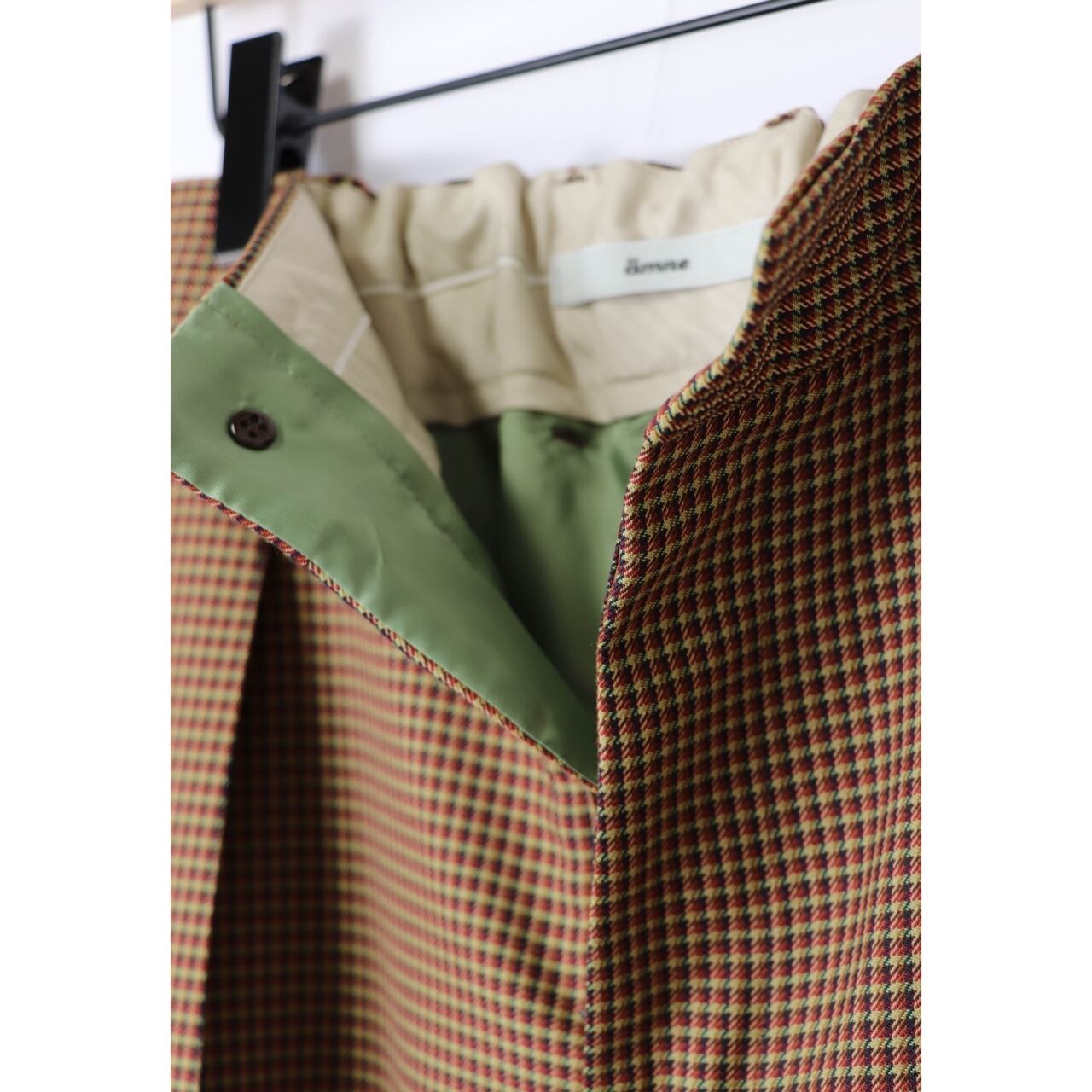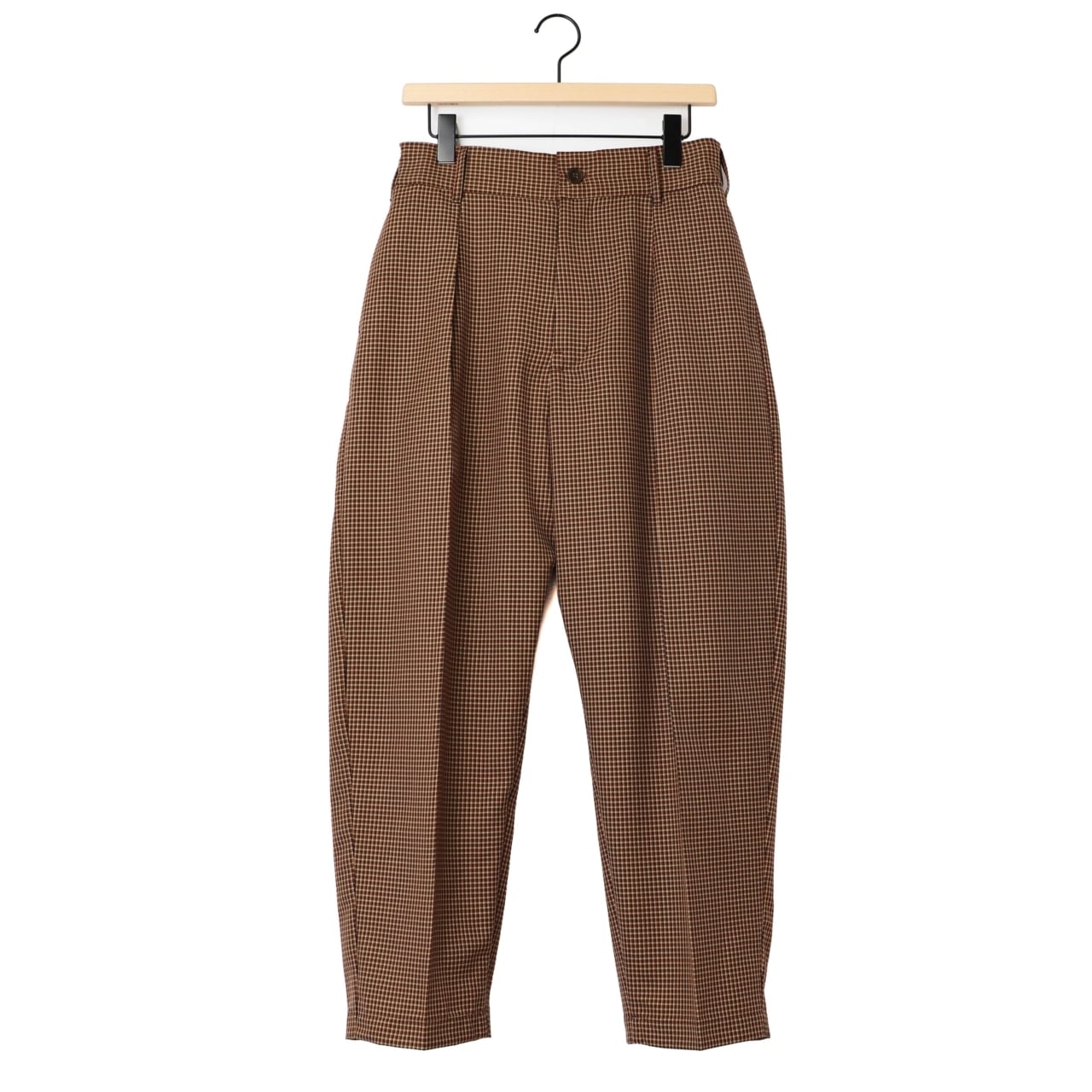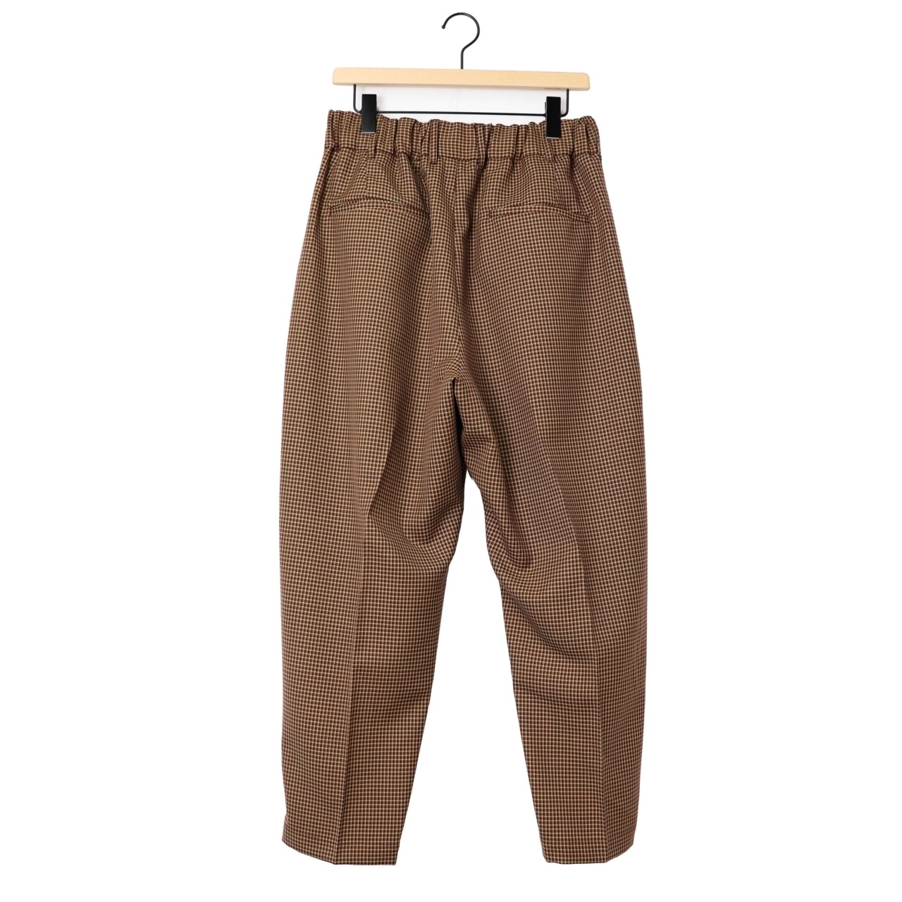 amneのNON MULESED CHECK tunny's slacksは、素材へのこだわりと洗練されたシルエットが融合した、上品な大人の日常着にふさわしい一本です。