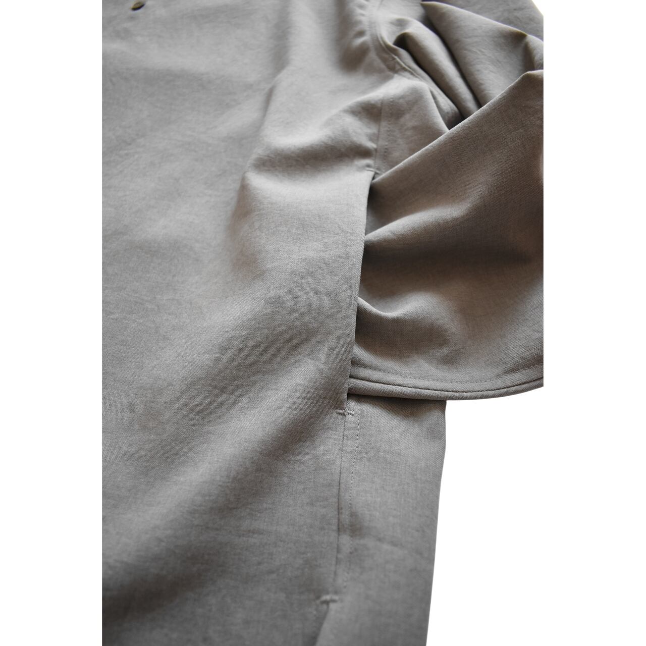 シャツライクな佇まいを崩さないよう、サイドには目立ちにくいシームポケットを配置。スマートなルックスを保ちながら、スマホや鍵などをサッと収納できる実用性も兼ね備えています。