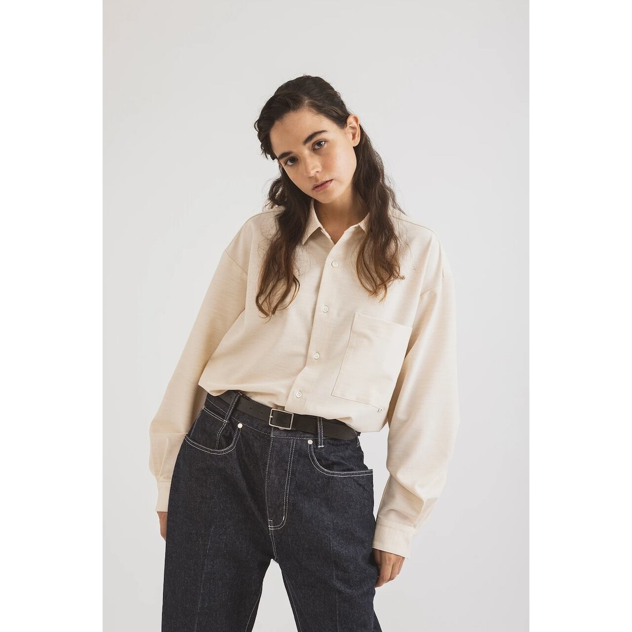 しかし、その見た目とは裏腹に、袖を通せばハリ感のあるストレッチ生地が驚くほど軽やかに身体に馴染み、シワになりにくい性質が常にクリーンな立ち姿を約束してくれます。