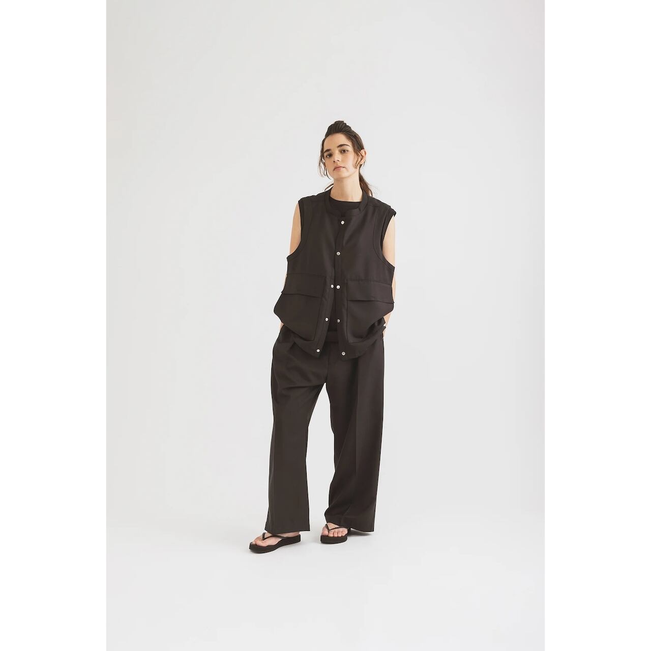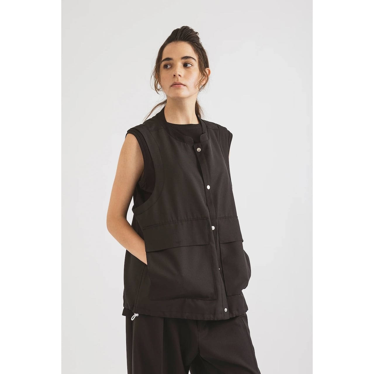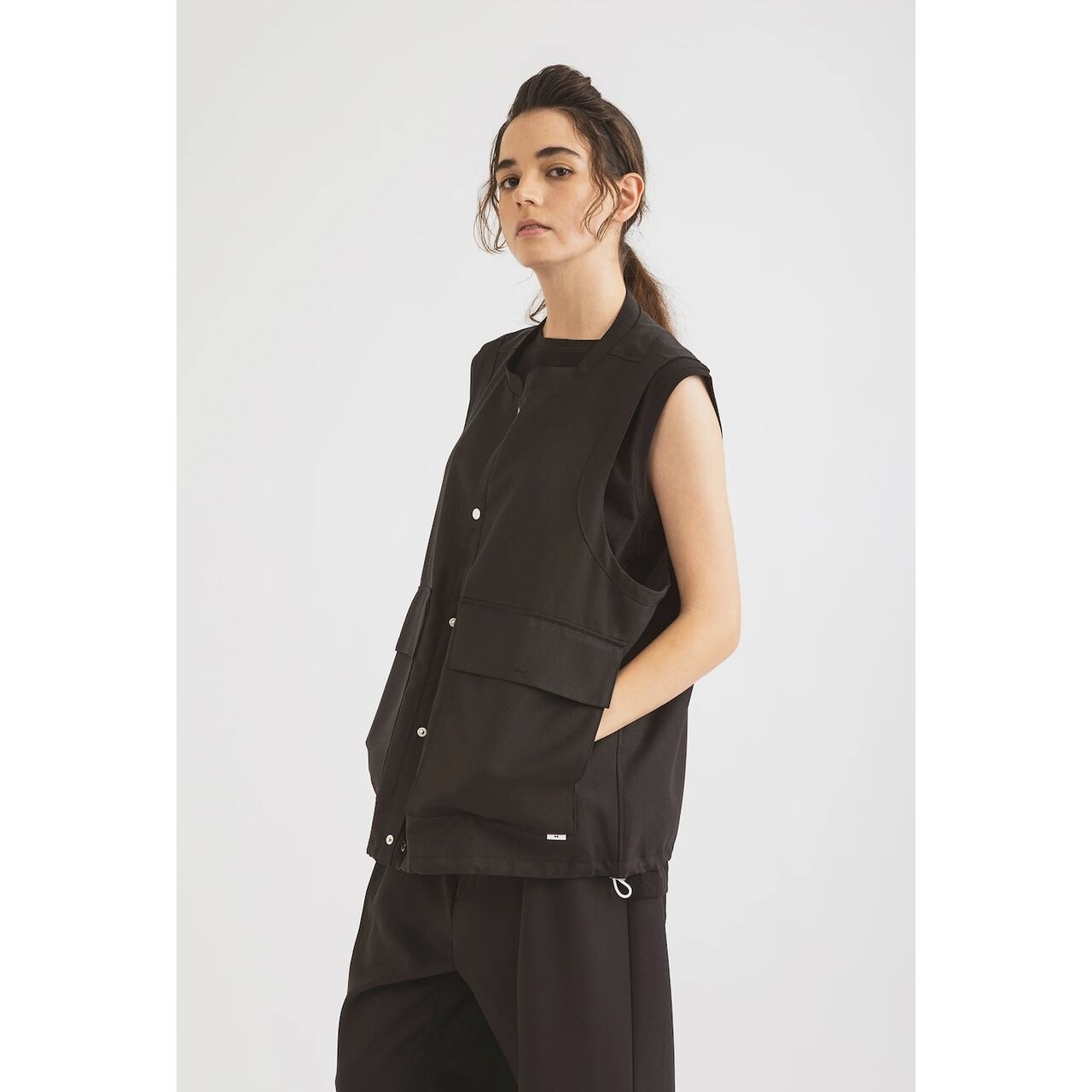 amne / GABARDINE useful vest - ギャバジン ユースフルベスト - BLACK - amn-VT-002 / アンヌ